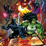 in de l’arc sur les Célestes et Jason Aaron envoie le pâté ! Ce dernier numéro est un numéro avec de la bagarre avant tout. Beaucoup de bagarres. Les Avengers géants continuent de taper sur des Célestes tout aussi géants tandis que les Avengers de taille normale s’occupent de la Horde ainsi que de Loki. Ce numéro m’a assez déçu car la résolution de toute cette histoire arrive avec un bon gros deus ex machina des familles. C’est bien dommage car les pistes lancées pour résoudre le problème de la Horde était intéressantes et censées et après nous en avoir fait tout le détail, Jason Aaron nous sort une solution de facilité en récupérant un tout petit élément de son intrigue implanté bien en amont. Ça passe vraiment mal et je n’y ai pas cru une seule seconde. J’avais passé l’éponge sur les Avengers XXL mais là non monsieur Aaron, vous allez trop loin !