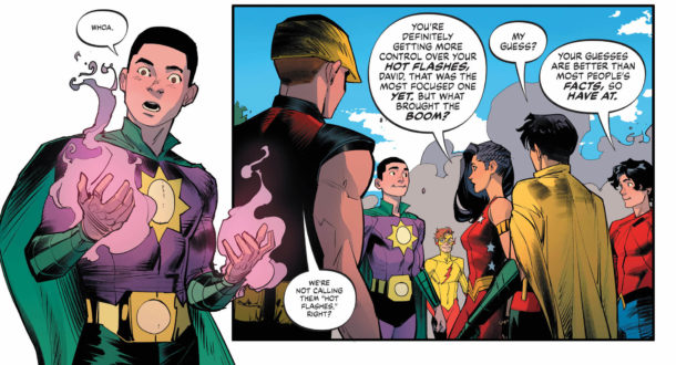 Le premier arc était à la fois fun avec un ton rappelant l’âge d’Argent, et classique dans son déroulé. Pour cette suite, Mark Waid effectue quelques changements. Le ton reste dans le fond optimiste, néanmoins l’auteur ajoute un peu plus de sérieux et de drame via David Sikela, seul survivant d’une terre parallèle. Le jeune homme a des pouvoirs, devient le sidekick de Superman, et se fait appeler Boy Thunder.