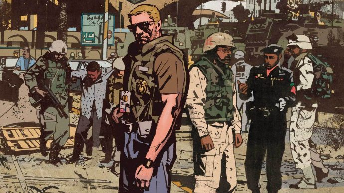 Omega Men Tom KingPour sa part, Sheriff of Babylon est directement situé en Irak, après l’intervention américaine et la mort de Sadham Hussein. Outre un sens du détail assez inouï dans les dessins (notamment, quant au rendu de la gestuelle des personnages), c’est surtout la critique acerbe des services de renseignements qui domine, montrant bien que chacun se tire la bourre et cache des infos aux autres pour un résultat finalement nul (ce qui renvoi au travail de DOA, un auteur français que je vous encourage à lire si vous vous intéressez à ce genre de récits).