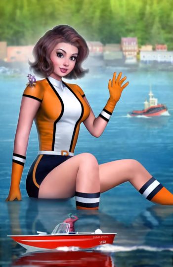 De son côté, Harley Quinn découvrira une machine à voyager dans le temps dans la nouvelle mini-série Multiversity : Harley screws up the DCU. La couverture principale rendant hommage à Flash #123.