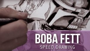 Nikho livre ici sa version de Boba Fett, le chasseur de prime de Star Wars. Je ne sais pas vous mais ici, on attend toujours avec impatience son Speed Drawing mêlantBoba et Booba.