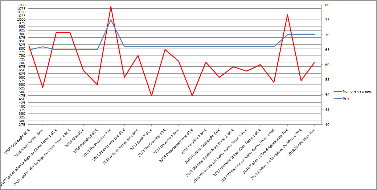 En 2010 sort le tome 1 de la saga cosmique Annihilation : 316 pages pour 28 €. En 2013, la saga Avengers VS X-Men est éditée à son tour avec ses 368 pages pour 28.40 €.