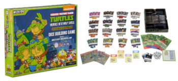 Au final, ce sont les illustrations des cartes qui sont en carton ! Sur la version que j’ai eue entre les mains (TNMT Heroes in half shell, soit les Tortues Ninja) il y avait un mélange entre le bon (Santolucco) et le moche (des images issues des différentes séries animées, mais niveau capture d’écran !).