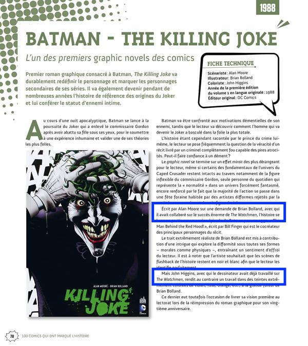 Le pire étant les erreurs factuelles. Qu’un des auteurs se trompe dans le nom des enfants de Wanda, cela peut passer. Par contre, écrire que Brian Bolland a dessiné Watchmen est une erreur douloureuse à lire (voir les encadrés de la photo ci-dessus). Et il y a d’autres erreurs par-ci, par-là qui entachent la qualité des conseils apportés.