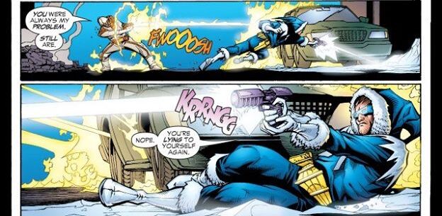 Heat Wave affronte Captain Cold. Dessins par Howard Porter et Livesay.