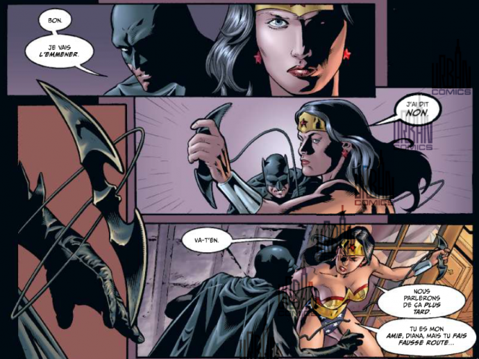 Ceux qui s’attendaient à lire un comics dans lequel une princesse amazone va poutrer des démons de 15 mètres de haut en seront pour leurs frais. Ici, le fond du propos est le message de paix de Wonder Woman. Le livre est donc un peu bavard et s’attarde sur des soucis d’organisation, de politique et de diplomatie avec, quand même, quelques scène d’action.