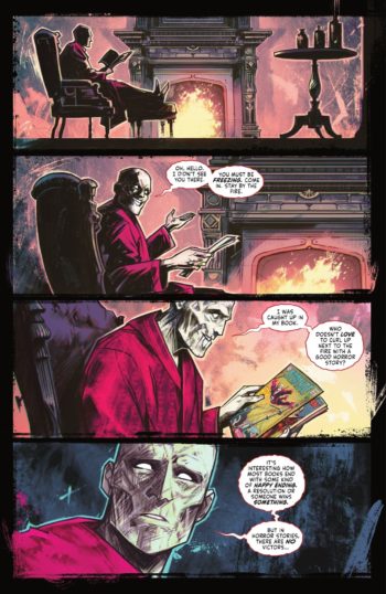 Pour en revenir à Deadman, son écriture est excellente, au-delà de la simple utilisation en tant que gimmick scénaristique. Dans mes souvenirs, cela fait facilement depuis Brightest Day que ce funambule fantomatique n’avait pas été mis autant en avant. De plus, l’aspect horreur est correct. Si on est loin de ce que le comics indépendant peut offrir, Williamson et son équipe d’artistes se font plaisir sur certaines mises en page ou encore certains designs de créatures.
