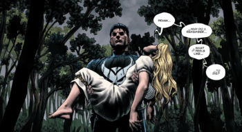 Ensuite, il y a un décalage entre ces scènes du passé et la partie moderne dans laquelle le Punisher n’a presque plus d’humanité. Dans le présent, le Punisher est manipulé par la Main. L’organisation criminelle ninja lui confère des pouvoirs surnaturels. Il doit affronter Arès, qui souhaite le punir de lui avoir tourné le dos. Le Punisher va alors devoir puiser dans son âme et dans la magie pour sauvegarder son dernier espoir. Dans le passé c’est un homme qui affronte ses démons et son goût pour la violence. Il cherche son équilibre entre cette voie et sa vie de père et de mari.