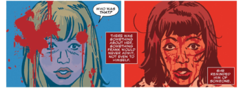 D’autre part, Paul Azaceta nous propose des dessins plus stylisés et épurés, qui donnent une impression de flou et de rêve. Ses couleurs sont plus chaudes et vives, mais aussi plus saturées et contrastées. Ses personnages sont plus caricaturaux et déformés, et ses scènes d’action sont plus suggérées que montrées. Il sait aussi jouer avec les perspectives et les cadrages pour créer des effets de surprise. Cette ambiance torturée colle à merveille à la psyché de Frank et de Maria, qui ne font qu’un dans ce tourbillon de violence.