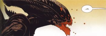 Les fans d’Aliens seront ravis car on y retrouve plusieurs références au film éponyme tandis que les fans de Mike Mignola s’y retrouveront aussi ; car le style graphique est similaire à celui que l’on retrouve dans Hellboy. On déplorera cependant un récit très court qui nous laisse un peu sur notre faim !