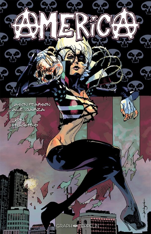 L’héroïne est badass, sexy et provocatrice. Elle se bagarre, survit à des explosions et casse des tronches à tour de bras. Les dessins jouent à fond sur le contraste entre cette héroïne tout à fait canon mais jamais séduisante. Si vous pensez vous la toucher sur le décolleté d’America, je vous arrête tout de suite. Elle veut souffrir avec un tatouage intégral, elle se réjouit quand elle perd une dent suite à un coup de poing. Elle est dans une spirale destructrice qui donne tout son charme à la série et justifie le recours à un dessinateur comme Jason Pearson.