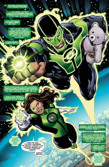 Simon est américano-libanais qui fut accusé à tort de terrorisme, quand à Jessica, c’est une jeune femme agoraphobe traumatisée qui fut choisi par Power Ring à la fin de l’event Forever Evil/Le règne du Mal. Bref, le duo n’est pas forcément le meilleur choix pour protéger la Terre aux côtés des autres super-héros DC Comics. Ces deux récents super-héros devront s’adapter et se faire confiance pour contrer une menace bien connue du Green Lantern Corps qui a jeté son dévolu sur notre belle planète bleue.