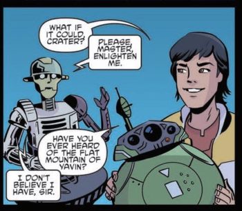 L’accès à la jeunesse se retrouve aussi dans les dessins et la caractérisation des personnages, qui n’est pas sans rappeler le format d’une série animée. IDW et Lucasfilm ont ainsi laissé le champ libre à nos deux frenchies Elsa Charretier et Pierrick Colinet pour écrire et dessiner la dernière partie du recueil. Celle-ci narre l’évacuation de la base rebelle de Yavin IV après la destruction de l’Étoile Noire.