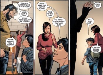 Jurgens mène avec brio l’histoire de notre famille Kent. Elle est devenue la famille White pour rester dans la clandestinité. On suit alors la famille autant dans le présent que dans le passé. En effet, des flash-back expliquent leur arrivée sur ce monde et l’enfance du petit Jonathan. On en apprend aussi un peu plus sur les actions clandestines respectives de Loïs & Clark.