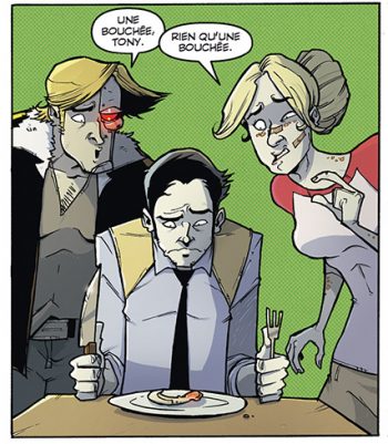 D’ailleurs, au delà du ton humoristique de la série, ce volume est bouleversant. Les choses tournent mal, globalement. Tony Chu aura été maltraité pendant tous ces épisodes. Les auteurs lui assènent ici quelque coups fatals. Ses aventures sont un sacrifice permanent mais on ne spoilera rien… On va essayer.