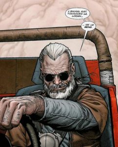 L’auteur écossais Mark Millar (Civil War, Kick-ass, Nemesis, Chrononauts, Starlight, The Ultimates…) livre ici un travail magistral et sans complaisance. Cet Old Man Logan est usé, fatigué et a préféré mettre de côté son passé et son nom super-héroïque. Le scénariste mène sa barque dans ce road-movie post-apo. On s’attache au griffu et son pote archer, à eux dans leur virée en style western vers la capitale. On en vient vraiment à se demander comment Logan a pu raccrocher à ce point. Jusqu’à la révélation qui en scotchera plus d’un ( surtout ceux qui ne l’ont jamais lu).
