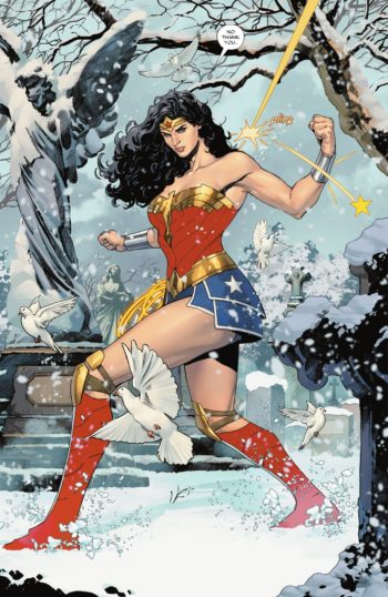 Néanmoins, malgré ces défauts qui diviseront (et sans aucun doute même au sein de l’équipe ici), le récit est très bon. Il suit une construction logique et parfois prévisible (certains rebondissements sont assez visibles) dans l’opposition entre Diana et le gouvernement américain. Cependant, l’écriture même du personnage de Diana est très bonne. Le personnage est toujours remplie de bonté et d’amour. Elle sait tout arrêter pour accomplir le dernier vœu d’un enfant mourant. Toutefois sans oublier qu’elle est une combattante redoutable.
